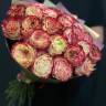 Стильный монобукет из свежих бутонов белых роз с красной каймой, спрятана прекрасная и загадочная улыбка дамы. Милая минималистическая композиция искренне порадует ее обладательницу и без слов выразит благодарность, признательность, искренние чувства человека, презентующего букет. Упаковка из фольгированных листов не затмит, а подчеркнет красоту букета.